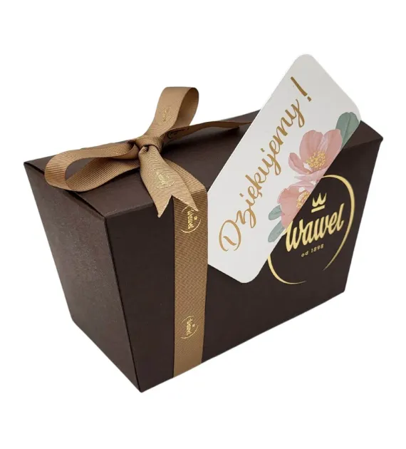 Szukasz wyjątkowego i smacznego sposobu na podziękowanie swojemu nauczycielowi? Kuferek bilecikiem "Dziękujemy" to doskonały wybór! Elegancki zestaw pełen klasycznych słodyczy Wawel z pewnością wywoła uśmiech na twarzy obdarowanego. To idealny prezent na Dzień Nauczyciela, który łączy elegancję z wyjątkowym smakiem, a prosty, ale pełen szacunku bilecik sprawi, że Twój gest będzie jeszcze bardziej osobisty.