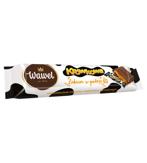 Legendarny smak Krówki mlecznej z Wawelu od lat zachwyca podniebienia Polaków. Słodka, maślano-mleczna kompozycja dostępna w formie poręcznego batonika. Skąpane w aksamitnie mlecznej czekoladzie nadzienie (51% masy produktu) o delikatnie karmelowym smaku, który znany jest każdemu miłośnikowi tradycyjnych krówek. To przyjemnie słodkie zestawienie wysokiej jakości składników, które docenią wszyscy miłośnicy dobrych smaków.